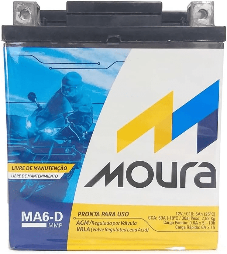 Lembrando que a maior indicação é a Bateria de Moto Moura Ma5-D, que tem uma excelente tecnologia e é resistente a vibrações, além de não exigir manutenção periódica.