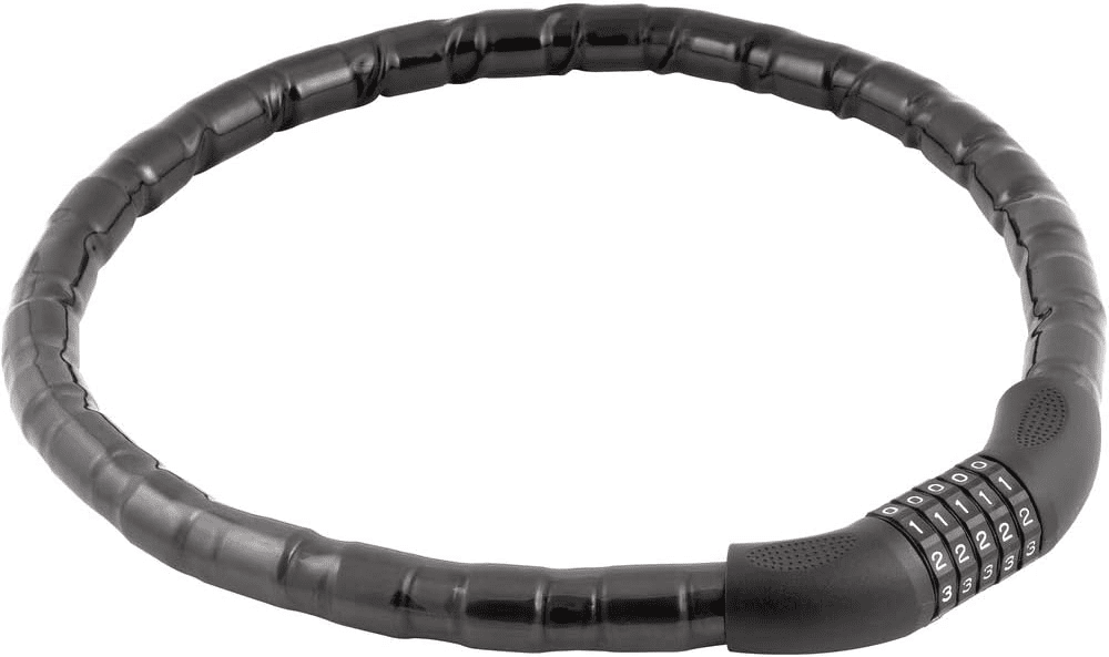 Seu sistema de senha elimina a preocupação com chaves, oferecendo um uso rápido e seguro. Com 100 cm de comprimento em formato espiral, permite flexibilidade para fixar a moto em diferentes pontos.