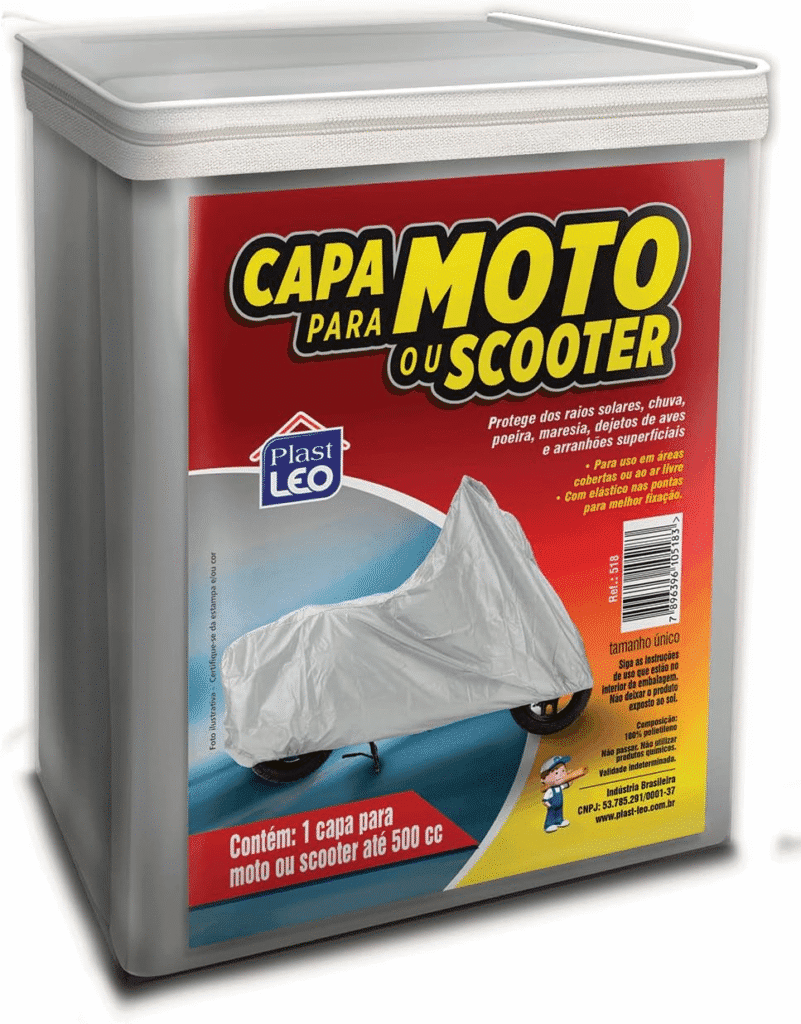 A Capa para Moto Plast Leo é ideal para quem deseja proteger sua moto ou scooter de até 500cc contra poeira, chuva, sol e dejetos de aves.