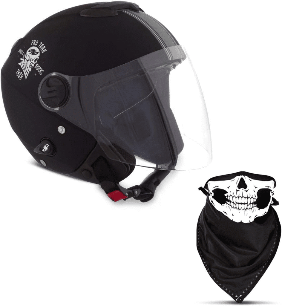A viseira solar interna permite dirigir com conforto, sem comprometer a visão. O design é complementado por uma bandana caveira inclusa, trazendo estilo único.