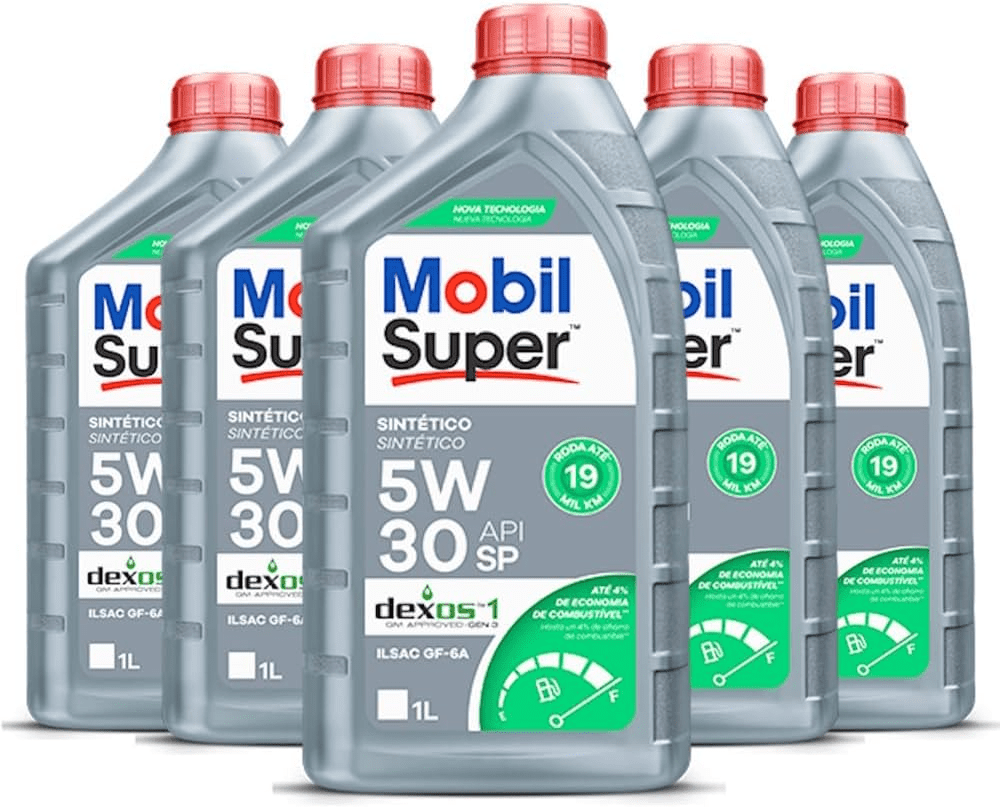 O Kit Óleo 5W30 Mobil Super com 5 Litros é desenvolvido para oferecer desempenho consistente e prolongar a vida útil do motor.